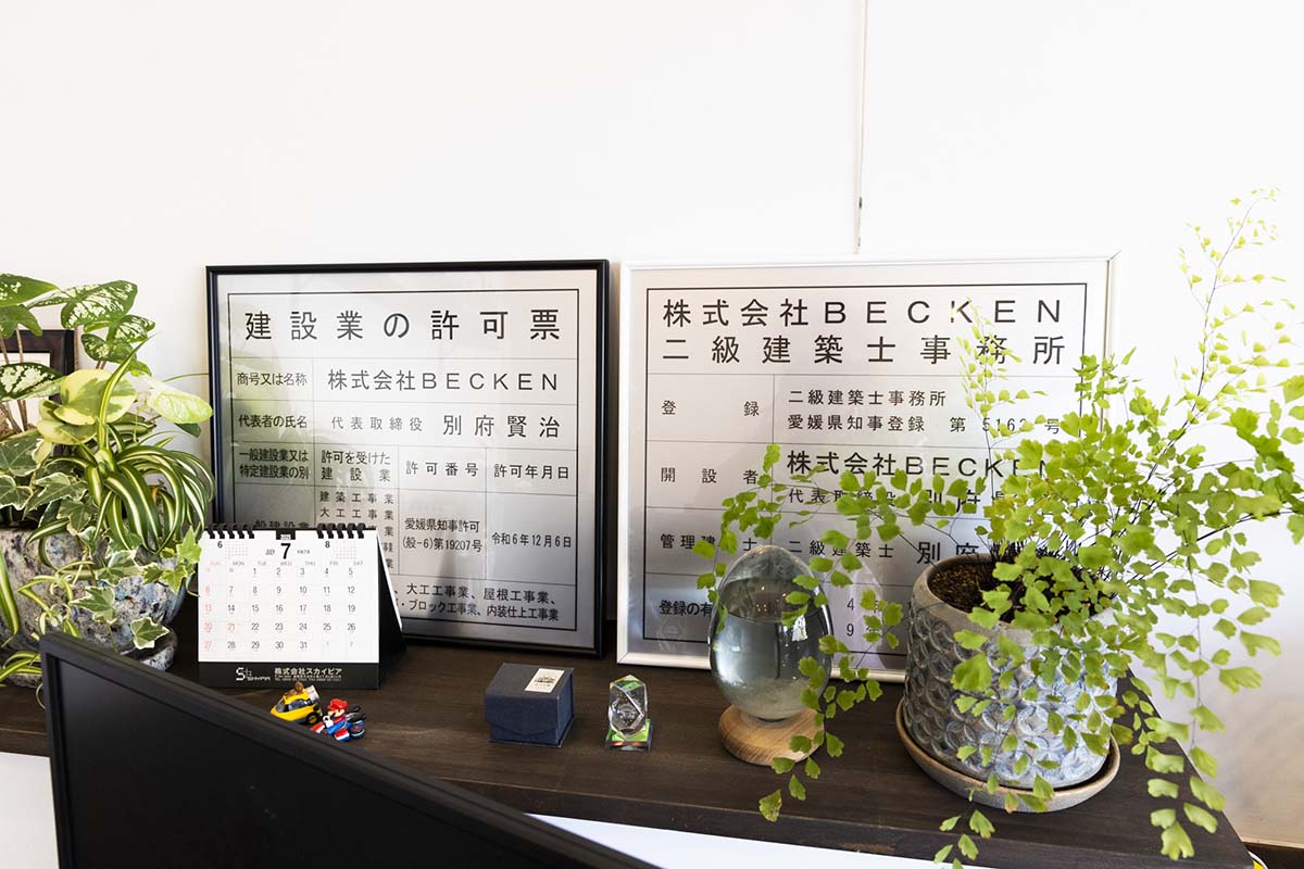 | 許可登録 | 建設業許可:愛媛県知事許可(般-6)第19207号 二級建築士事務所登録:愛媛県知事登録 第5163号 |