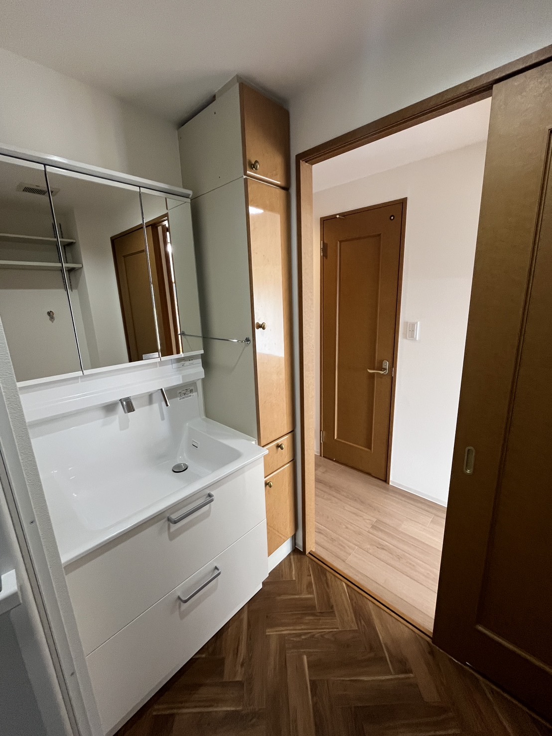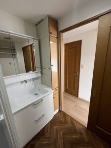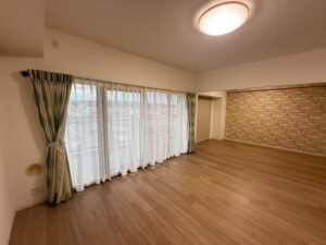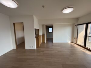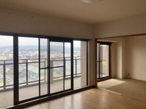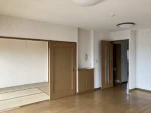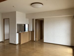 DATA カテゴリー / マンションリフォーム(2025年) 施工事例 / ほぼ新築・マンションリフォーム 地域 / 今治市南日吉町 築年数 / リフォーム面積 / 約84.04㎡ 間取り / 4LDK 工期 / 2025.6~2025.7(約1か月半) 高層階の見晴らしの良さに憧れていたと施主様。 和室をフローリングに変え、LDKがより広く感じれるようになりました。 天井・壁・床はすべて貼替、キッチンやUB・トイレ等設備も入れ替えたので新築のような仕上がりに。 ところどころアクセントクロスで柄を取り入れ、施主様の遊び心が引き立ちます。 施工前 施工後
