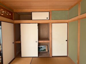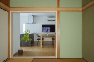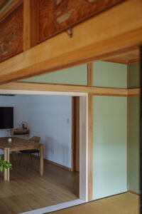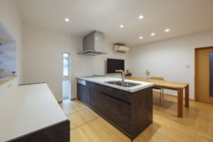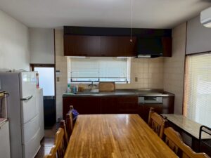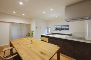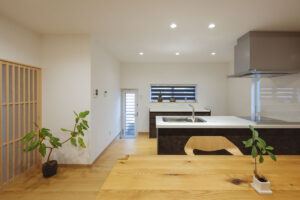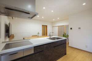 DATA カテゴリー / 戸建てリフォーム(2025年) 施工事例 / キッチンリフォーム 地域 / 今治市桜井 築年数 / リフォーム面積 / 31.9㎡ 間取り / 工期 / 約2か月 奥様と二人で暮らされている施主様。使い勝手が悪かったキッチンをリフォームしました。 対面キッチンにし、天井・壁と白いクロスに、床はカラーフロアを重ね貼りしたので印象がとても明るくなりました。 掃き出し窓がなくなりサッシは小さくなりましたが明るさに問題なしです。 お子様家族が遊びに来た時にも使いやすいよう、押入を撤去してLDKとつながるように。 間仕切りの建具は和室に合うよう造作しました。 施工前 施工後