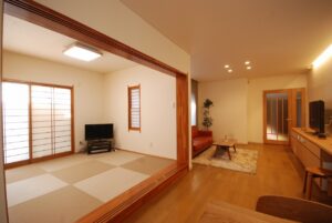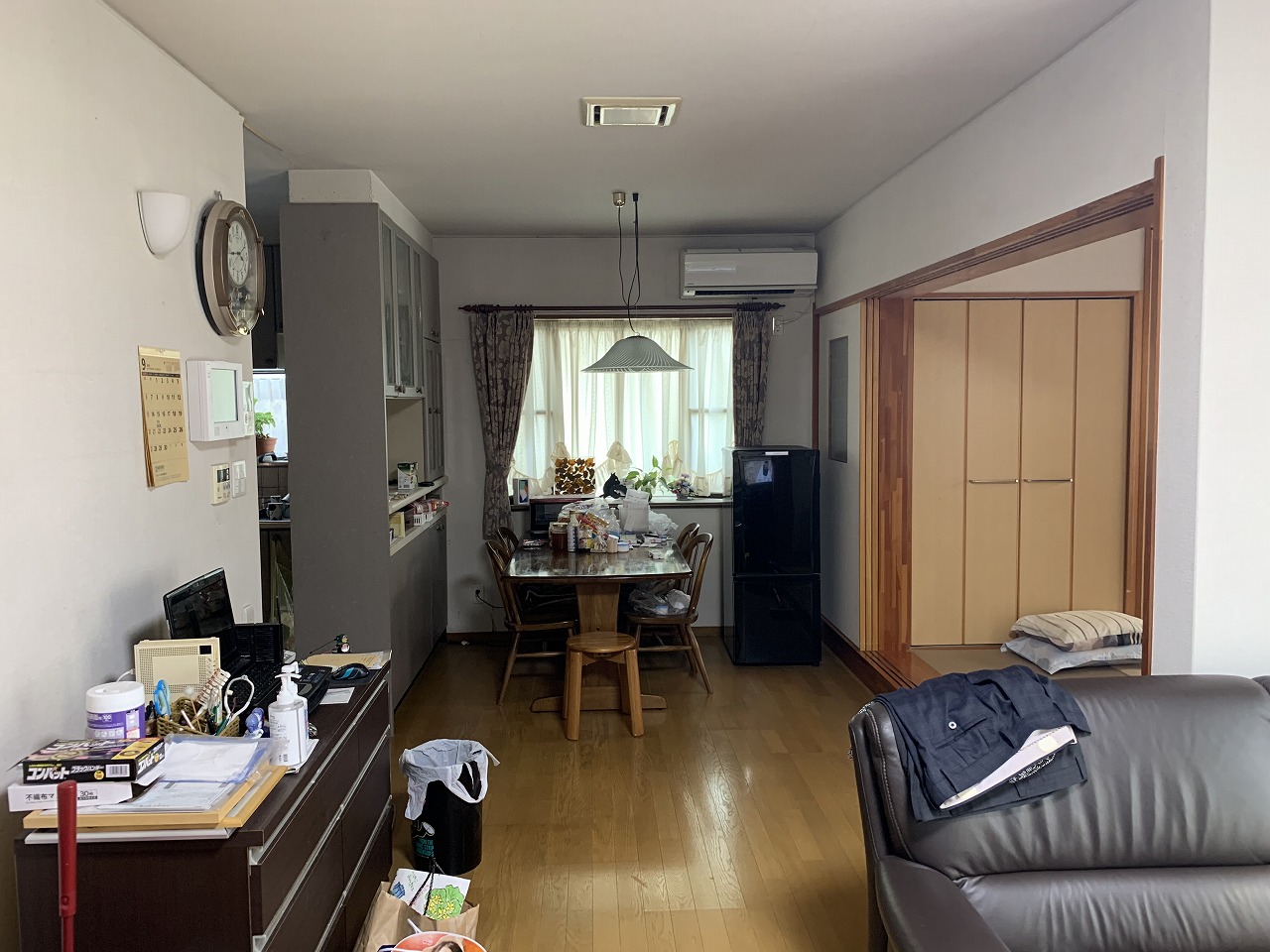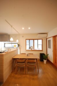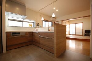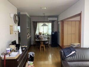 DATA カテゴリー / 戸建てリフォーム 施工事例 / LDKリフォーム 地域 / 今治市 築年数 / リフォーム面積 / 約32.76㎡ 間取り / 工期 / 2020年(約2カ月) キッチンとの間にあった壁収納を撤去し、空間全体をワンルームへと再構成。 施主様が希望されていた対面キッチンを実現しました。 限られたスペースでも使いやすいよう造作収納を設け、さらにLDKの入口も造作建具へ変更することで、空間全体に一体感とまとまりを持たせています。 畳コーナーもクロスを貼替したことでより明るい印象になりました。 施工前 施工後